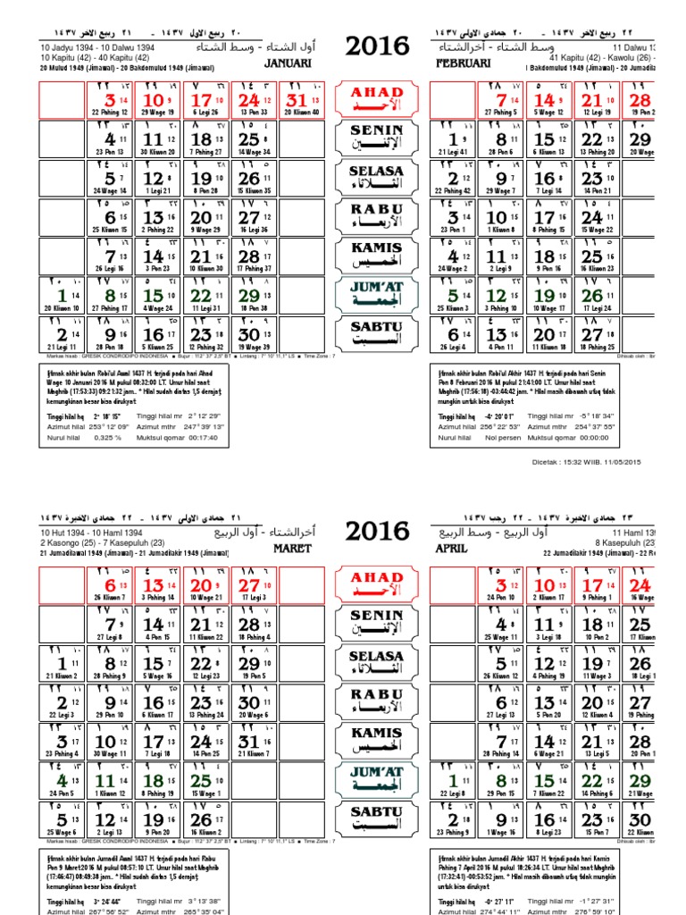 Kalender 2016 Dengan Hijriah Pdf Document