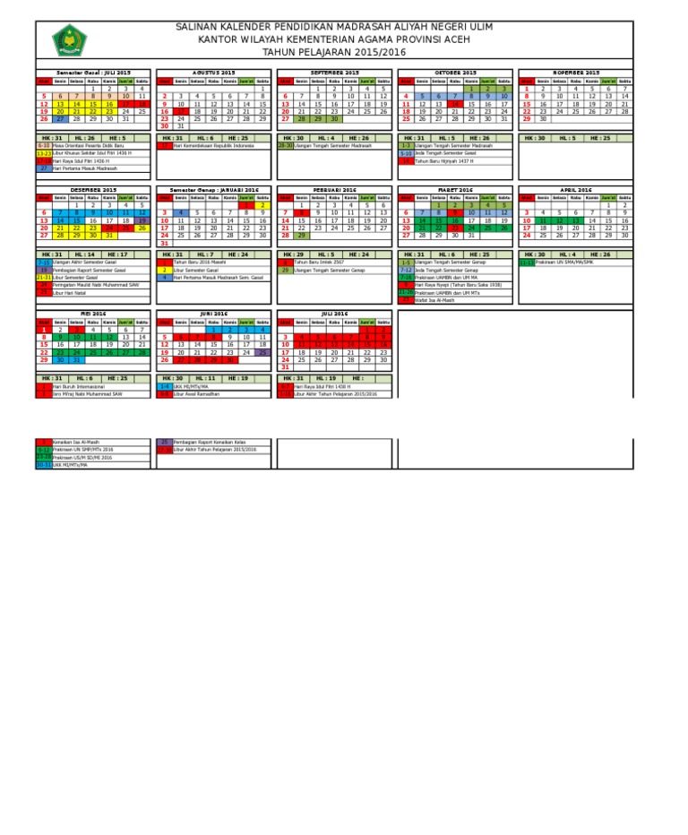 Kalender Pendidikan Tahun 2015 2016 Kemenag Untuk Madrasah Ra Mi Mts Ma Mak File Guru Sekolah
