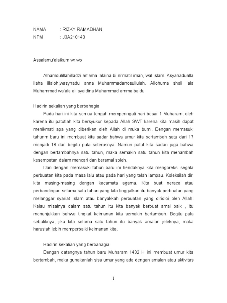 Pidato Singkat Agama Islam. Sehingga setiap tanggal 1 muharram seringkali diperingati oleh umat islam. Contoh Pidato Muharram Untuk Anak Anak.