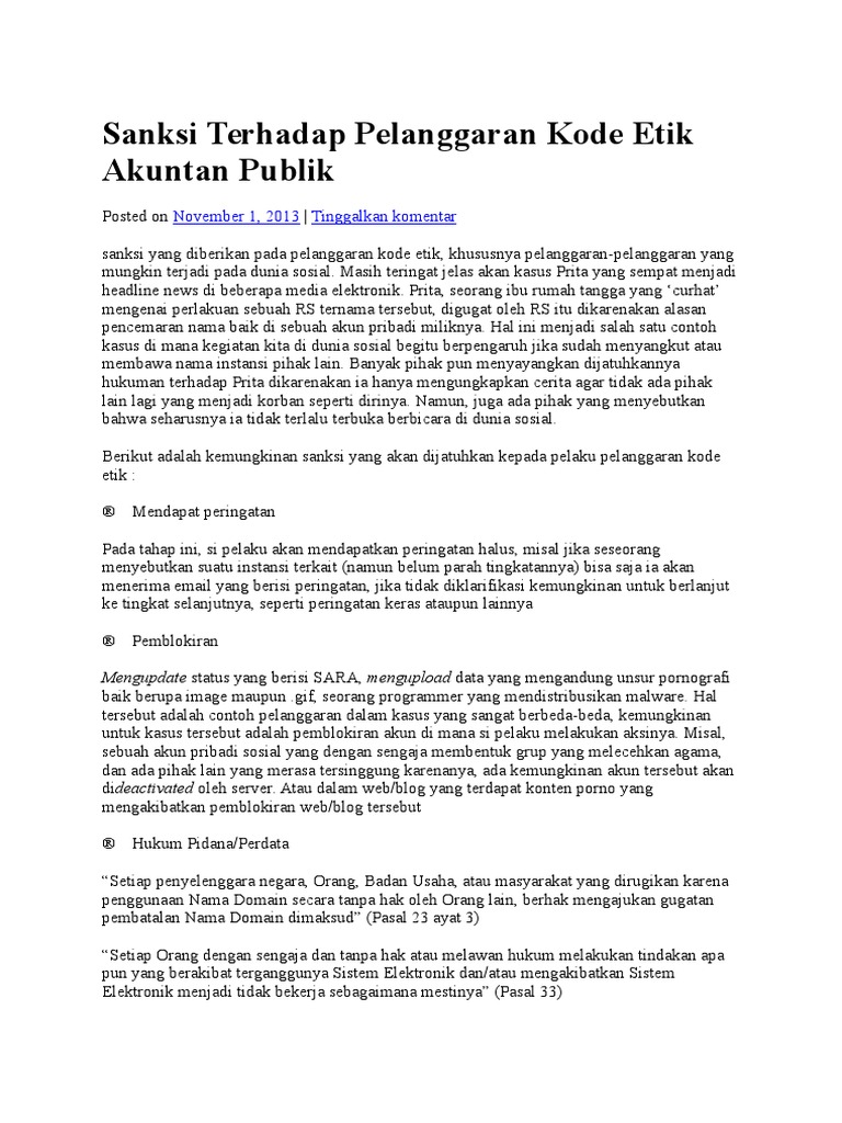 5 Kasus Pelanggaran Etika Profesi Edi Ariasa Academia Edu