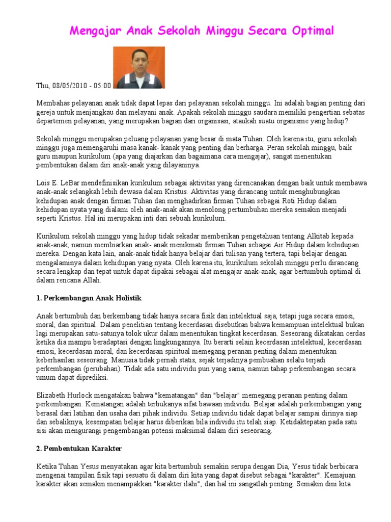 Ada banyak program atau kegiatan yang bisa dilaksanakan di sekolah minggu. Hulst Pedoman Khotbah Lengkap Jakarta. Para pelayan anak sering kali merasa kesulitan ketika harus menyiapkan bahan untuk mengajar di sekolah minggu khususnya bahan khotbah.