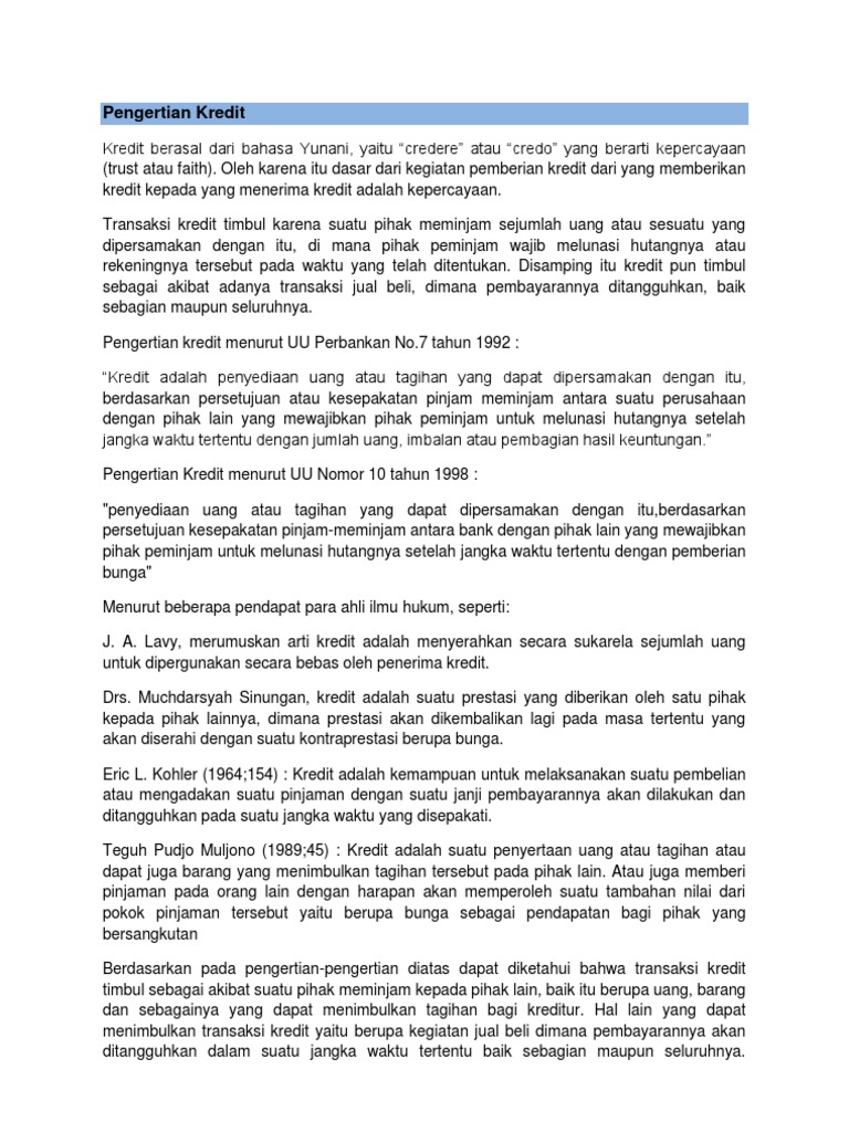 30 Pengertian Kredit Menurut Para Ahli Info Dana Tunai