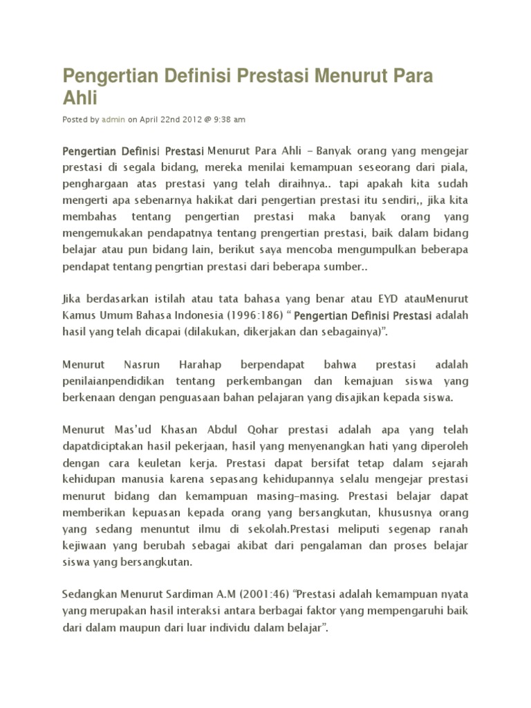 Pengertian Definisi Prestasi Menurut Para Ahli