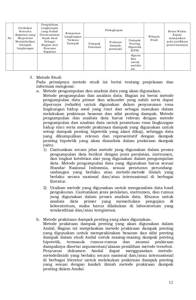 Merumuskan lingkup dan kedalaman studi Andal. Oleh Pak Guru Diposting pada 10 Juli 2021. Lampiran I PerMen LH No 16 Tahun 2012 Pedoman Penyusunan Kerangka Acuan ANDAL Dewi Hadiwinoto.