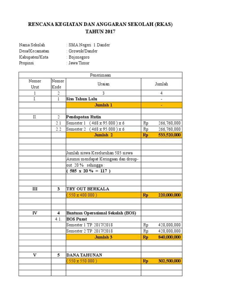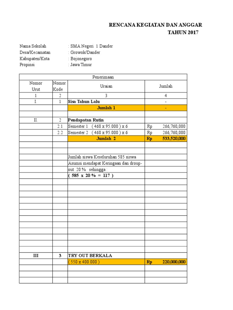 Rencana Kegiatan Dan Anggaran Sekolah Rkas Sma Negeri 1 Dander Tahun 2017