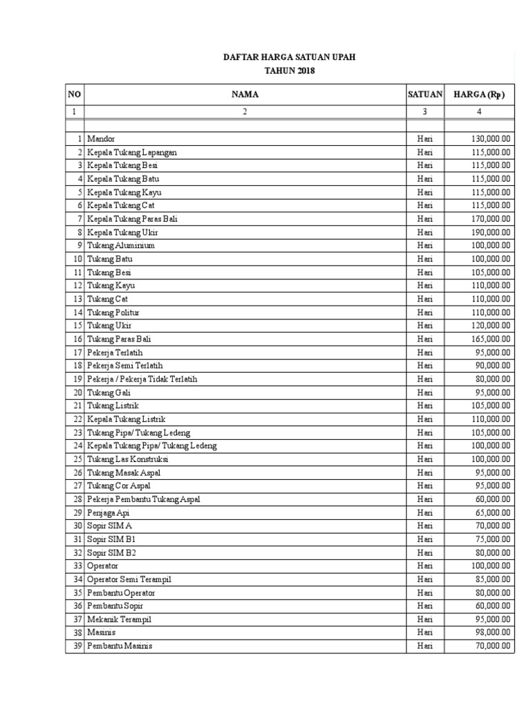 Dengan begini diharapkan bisa memperbanyak koleksi analisa harga satuan sehingga dapat memudahkan para insinyurarsitek maupun masyarakat umum yang hendak terjun ke dalam dunia bangunan. Peraturan Bupati PERBUP TENTANG Penetapan Harga Satuan Pekerjaan Konstruksi HSPK dan Harga Satuan Bangunan Gedung Negara HSBGN Kabupaten Berau Tahun Anggaran 2018.