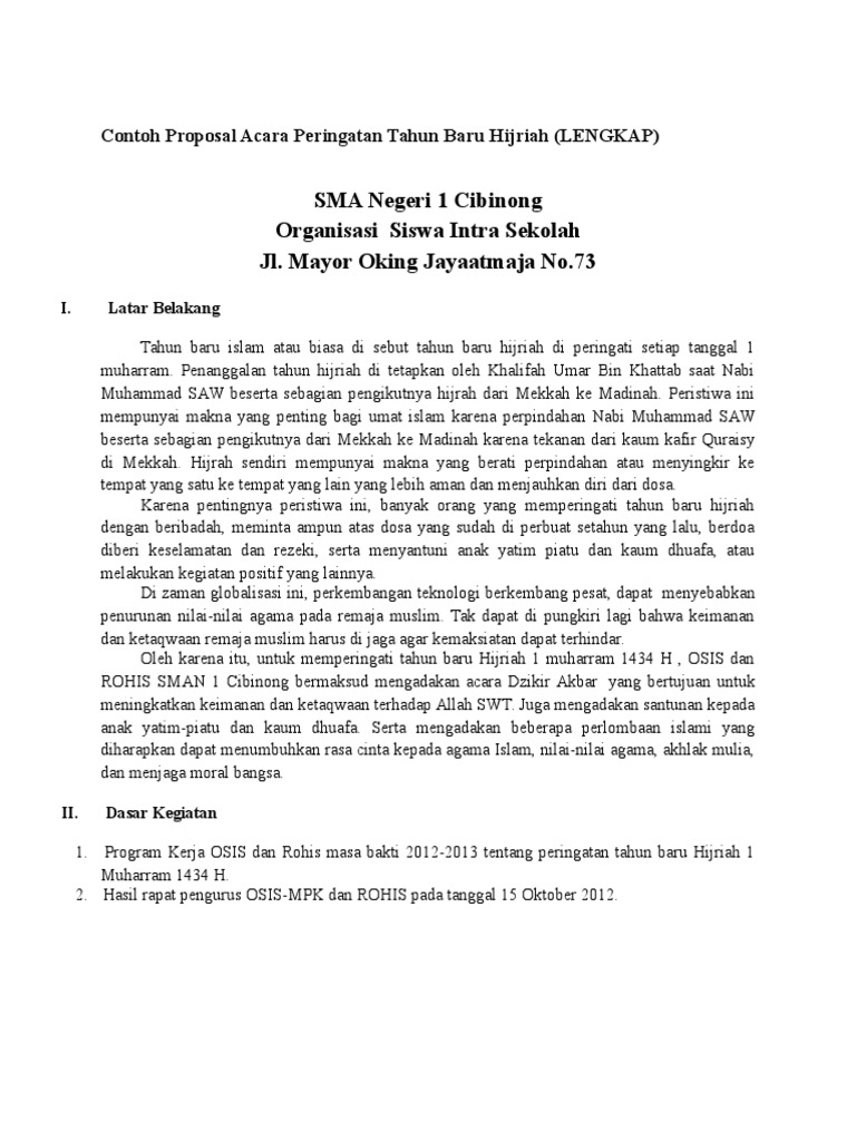 Doc Contoh Proposal Kegiatan Tahun Baru Hijriyah Haedar Algazali Academia Edu