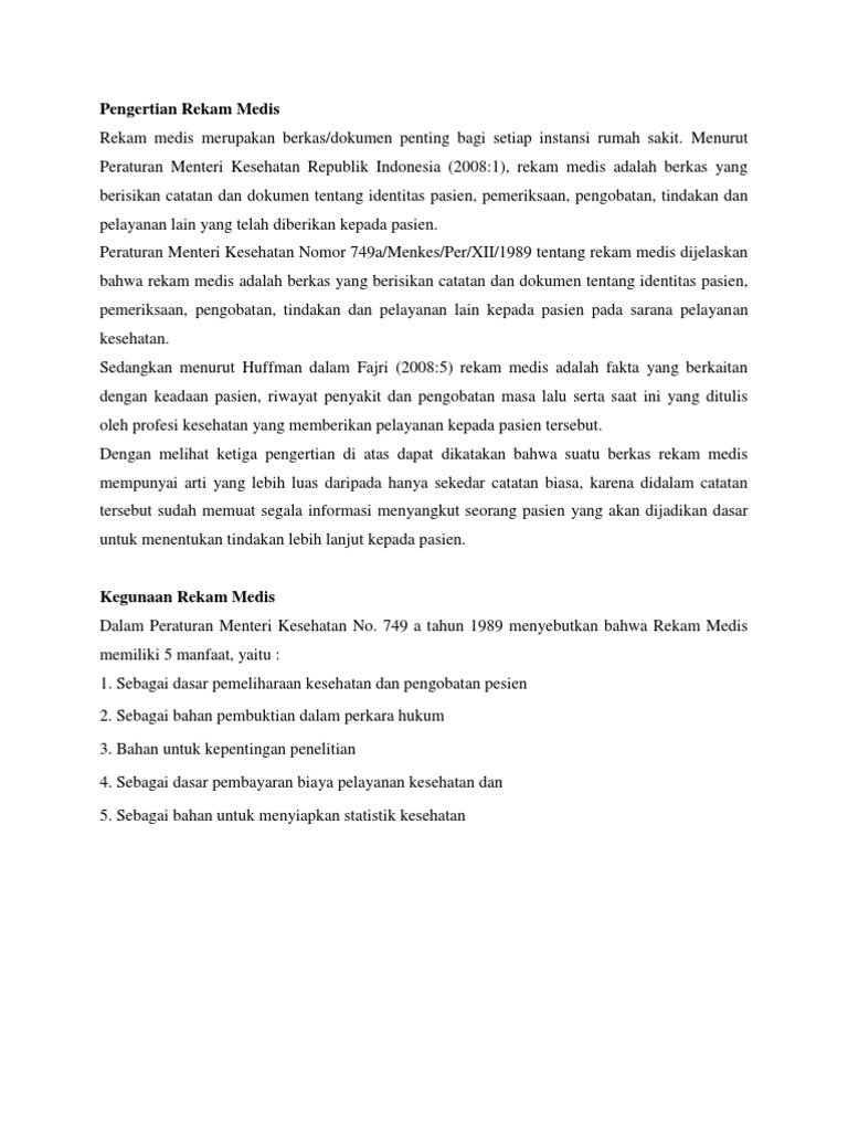 Pengertian Rekam Medis Menurut Permenkes 269 Tahun 2008 Berbagai Tahun
