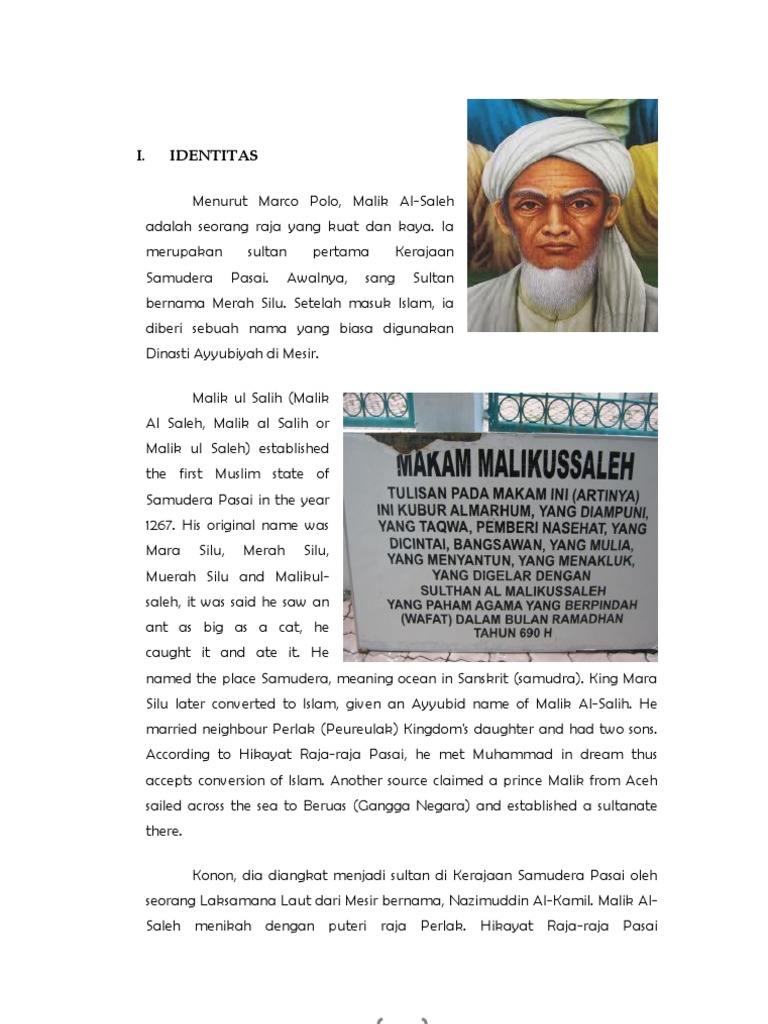 Gambar Sultan Malik Al Saleh - Sejarah Sultan Malikussaleh Sultan Malik Al Saleh Berdasarkan berita Marcopolo th 1292 dan Ibnu Batutah abad 13. The pious king the pious ruler is an Acehnese who established the first Muslim state of Samudera Pasai in the year 1267.