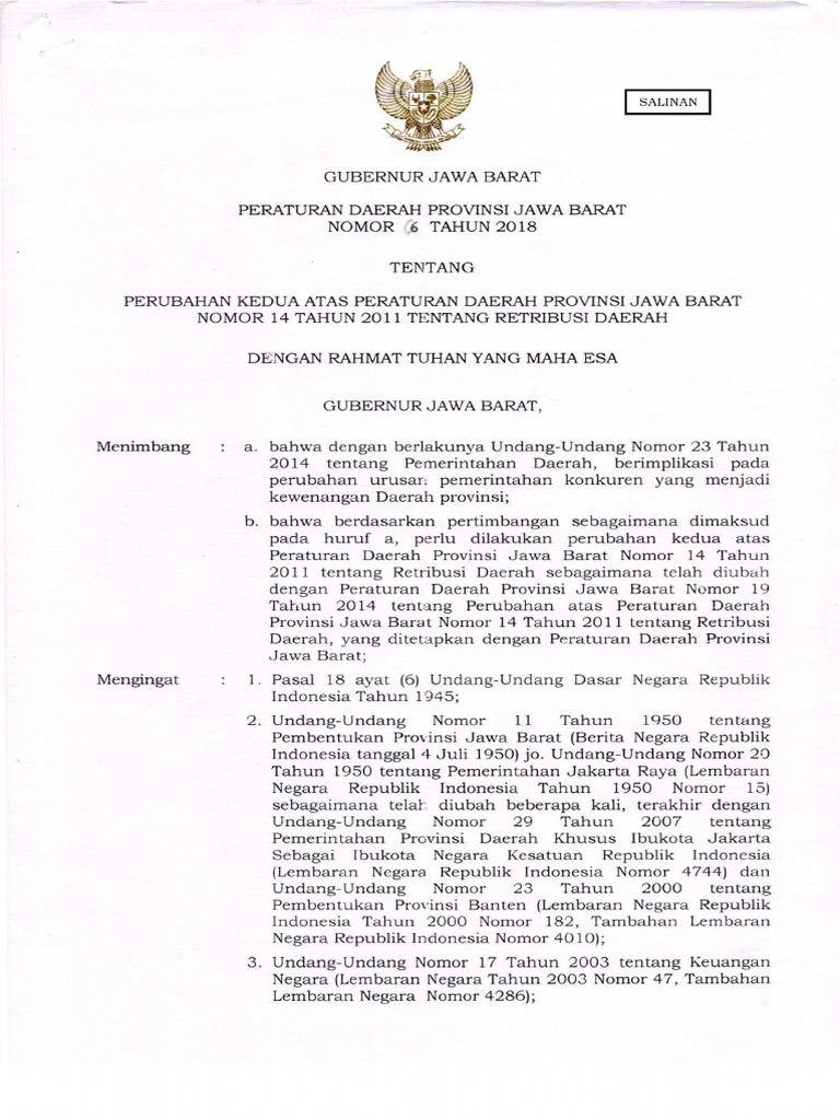 Perda Prov Jawa Barat No 6 Tahun 2018 Tentang Retribusi Daerah