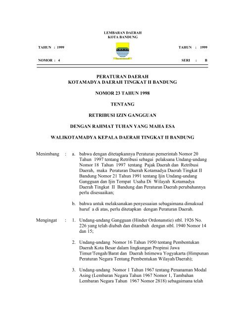 Peraturan Daerah Kotamadya Daerah Tingkat Ii Bandung Nomor 23